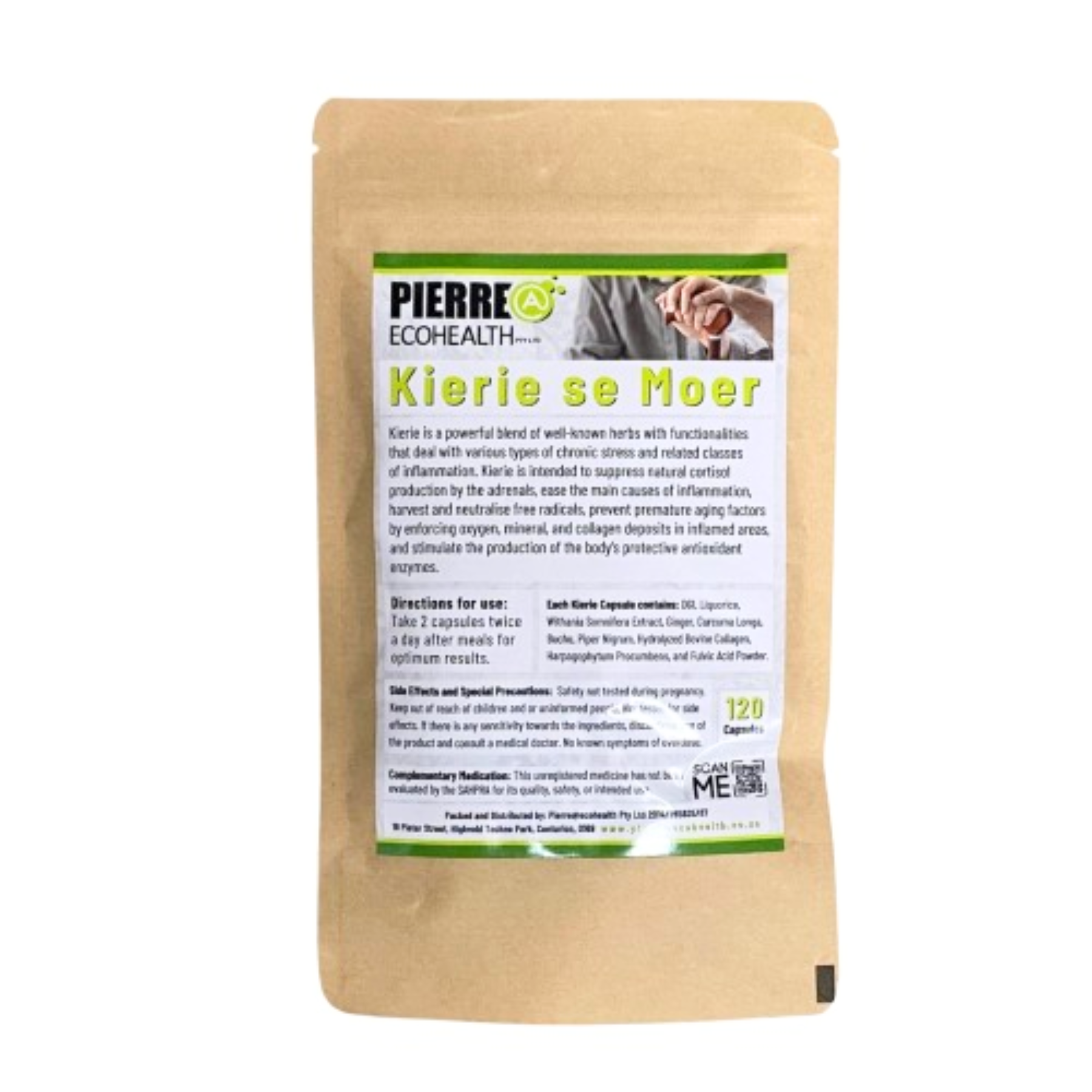 Kierie (KsM) is a powerful blend of well-known herbs with functionalities that deal with various types of chronic stress and related classes of inflammation, which is the main cause of weight gain and the many known degenerative diseases.